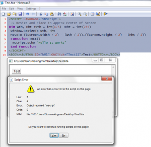 HTA is just HTML for desktops, I suggest the HTA instead of using CreateObject("InternetExplorer.Application") because the HTA is easier to work with, fewer restriction from the OS. I used VBS to code the countdown and the graph works from vbs code. How make a HTA Goto Full Screen, Change WindowState="Normal" To WindowState="Maximize" There is 3 default, Normal, Minimize, Maximize I suggested this because you can not use WScript with in the CreateObject("InternetExplorer.Application") it a HTML object that does not support that object. Here a simple demo using wscript in an hta <script LANGUAGE='VBScript'> '-> Resize And Place In Approx Center Of Screen Dim Wth, Hht :Wth = int(475) :Hht = int(255) window.ResizeTo Wth, Hht MoveTo ((Screen.Width / 2) - (Wth / 2)),((Screen.Height / 2) - (Hht / 2)) Function Test() wscript.echo "Hello It Works" End Function </SCRIPT> <BODY><BUTTON ID="b01" ONClick="Test()">Test</BUTTON></BODY> Using the Test Button will produce this error at the start Wscript -