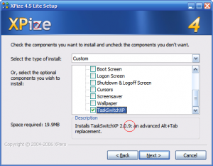 I know you don't have to install it if you don't need it. And I don't install most of these things. But you still have to download it. Although 5MB is not really much I think it becomes too much, even things that already look XP are included and themes for software that not everyone has. I found out about Visual Task Tips today, IMO if you include TaskSwitch you could also include this. It does a bit the same thing. TaskSwitch adds thumbnails in the taskswitcher and Visual Task Tips adds thumbnails to the taskbarbuttons on hoover. It's a nice little shell extension, it uses not more than 3MB RAM. I don't need either of these but just let you know.