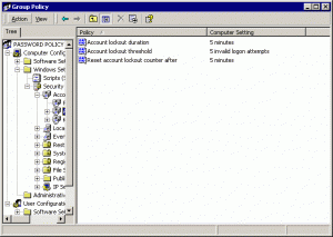 2000 active directory with exchange 2003 in my domain i have a password policy.... password policy - enforce password history = 5 passwords remembered maximum password age = 180 days minimum password age = 1 day passowrds must meet complexity requirements = enabled account lockout policy - account lockout duration = 5 min account lockout threshold = 5 invalid logon attempts reset account lockout counter after = 5 min if an account gets locked out....the "reset account lockout counter after = 5 min" dosn't work...i have to go in manually in ad and unlock the account.... any clues?