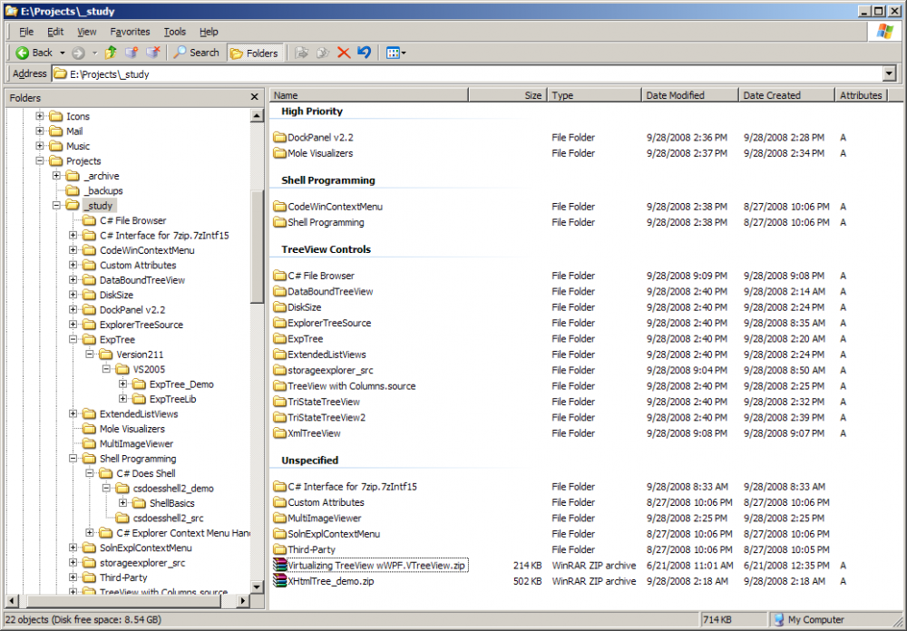 Searched for this as a previous tweak here, couldn't find it... sorry if it's old hat to anyone! I had this crazy idea the other day... lots of people know the property sheet guid for Author, Title, etc. is {883373C3-BF89-11D1-BE35-080036B11A03}. These properties are stored as alternate data streams in the file. You can right-click just about any file, go to properties, and you'll see a 'Summary' tab where you can set these (and an advanced button to access a few more). Knowing only the basics of ADS, I wondered if folders could have them. So I went to the following registry key: HKEY_CLASSES_ROOT\Folder\shellex\PropertySheetHandlers ... and added {883373C3-BF89-11D1-BE35-080036B11A03} as a sub-key. I figured I would either have the coolest tweak I'd seen in a long time, or my hard drive would melt. Lo 'n Behold, it worked! Now I can select a dozen folders, right-click, and set categories!! What's the point? See picture: Add the column 'categories' (mine is sized to be hidden), and pick 'show in groups'. Voilà! The property sheets: Complete registry file follows... copy and paste into a file called categories.reg; right-click and 'merge'. Windows Registry Editor Version 5.00 [HKEY_CLASSES_ROOT\Folder\shellex\PropertySheetHandlers\{883373C3-BF89-11D1-BE35-080036B11A03}] @="Summary Properties Page"