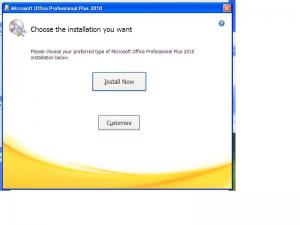 Trying to do a completely silent install of Office 2010. But it keeps comming up with the Install/ Customize dialog. Here is my config.xml file <Configuration Product="ProPlusr"> <Display Level="none" CompletionNotice="no" SuppressModal="yes" AcceptEula="yes" /> <Logging Type="standard" Path="%temp%" Template="Microsoft Office Professional Plus Setup(*).txt" /> <PIDKEY Value="3243423423423424" /> <Setting Id="AUTO_ACTIVATE" Value="1" /> <USERNAME Value="myuser name" /> <COMPANYNAME Value="company name" /> <DistributionPoint Location="\\server\share\x86\ProPlusr.WW" /> <Setting Id="SETUP_REBOOT" Value="never" /> </Configuration> I had it working once or twice, but now it fails and asks for install etc.. I cannot use the setup /admin command since this is a different version of office 2010. Any idea what is wrong?