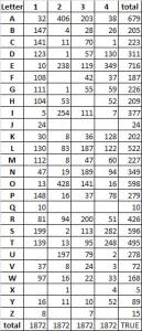 After a long lapse how about some stats: Statistics: 880 posts 13270 views 1872 words 19 words repeated 984 words since last repeat (GOOP), also the longest run without a repeat 9 the shortest run between repeats ( DASH -> GOOD) 5 the number of repeats in a row without a new word (FAST CAST CASE BASE VASE) 21 repeats caught and denied in the next post 30 most new words in a single sentence. 58 most new words in a paragraph. 21 most new words added by a post without a sentence. 37 number of members who have participated in this thread 49 posts that added no words to the list Top 10 posters: 150 - NOTS3W 137 - anonymous_user 126 - IcemanND 99 - Mijzelf 93 - Idontwantspam 44 - TAiN 39 - spacesurfer 37 - Railman5 27 - N1K 25 - DL And one person who joined the forum in 2005, and his SOLE post to date is on this list and he has not been back since. Top 10 Word providers (some post contain more than 1 word): 564 - NOTS3W 552 - anonymous_user 156 - IcemanND 150 - Mijzelf 129 - Idontwantspam 80 - DL 46 - Railman5 43 - TAiN 38 - spacesurfer 27 - N1K Letter Statistics: