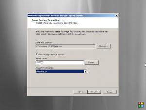 Ok, heres my guide if I sound like an a** during some parts please forgive me, as its after 2am here. Do all this from scratch to prevent errors and only use x86 stuff VM's are 32-bit ONLY (yes its a B!$ but humor me) I have this all setup in a DOC with pictures and all but it has company info, because its for my co-workers in IT and I need to strip all that and then I'll post it, it takes time. Give me a break I'm only 17 Ok to start you will need: 2x Servers I perfer 2008 but 2003 SP2 (can be R2) works fine (NOT ON VIRTUAL SERVER for now at least, I'm testing it) 1x VM for Capture and Deploy (NOT ON VIRTUAL SERVER) 1x Windows Server 2008 "boot.wim"  1x WinPE 2.0 from WAIK "winpe.wim" Options: Create Three vm's on a single machine with enough RAM for all  2x Windows Server 2003 "128MB Ram"x2 = 256mb 1x Windows Test Machine that can run Windows Server 2008 Boot Image (Made from 2008 boot.wim, Windows 2008 setup requires 512mb) ""512mb RAM"x1 = 512mb 256+512=768 Total RAM + HOSTRAM(512mb?) = 1.28(1.5) GB (Recommended 2GIG) OR Create WDS Server andor Domain Controller andor Client(Widows XP) on physical machines OR(not tested) Create the two server on VS but have client on a DIFFERENT physical machine, VM or spare laptop or something. Note: I have not tested running the DC and WDS Build Server on VS I can't say it'll work, yet. WDS Will NOT Work fast or sometime at all when all three, especially the client are VS's on VS, plain and simple (90 minute waits), trust me on that one I've spent days at work trying to figure that BS out, finally I gave up, its to easy to get around, get a 6715b, i.e a decent laptop or desktop. Throw 3gigs of ram in it and install VC2007, done. Step One:  Create first server (1), name it 2003AD or something that references that it is an Domain Controller  Install Active directory name domain "WDS.Test"   Set static IP 10.73.1.1  Set static DNS Crap  Install DHCP   Add scope call it "WDS Test"  Scope range 10.73.1.25-100  Activate scope  Restart, login  Create new Domain Admin, pick fancy name (oh, and set a **** password, a good one)  Return server to logon screen, its done, set and forget. Step Two:  Create second server (2)  Name it 2003BS (Build Server)   Boot  Login with new Domain Admin  Set IP 10.73.1.2  Add to "WDS.Test" Domain  Install WDS  Start>Control Panel>Add or Remove Programs>AddRemove Windows Components>WDS  Restart  Login with fancy new Domain Admin  Watch Stargate-SG1  And Atlantis  Go to WDS MMC  Start>Admin Tools>WDS  Right-Click>Configure Server  Respond to all, uncheck add image now  Finish  Add Windows Server 2008 boot.wim *disable this as its useless alone*  Add Windows PE boot.wim from WAIK  Right-Click on vista PE and click "Create Capture Boot Image"  Right-Click on Windows Server 2008 Setup and click "Create Discover Image" Step Three:  Create Windows XP VM  Install Windows  Sysprep it  Reboot Step Four:  Boot WinXP VM off network  Select Capture Image  Follow prompts  Save image to a local drive (this must be done) then click the check box to upload it to the WDS server.  Type the server name (2003BS) and click connect it will change the name to one with the full dns tag. (2003BS.wds.test)   Name image Windows XP Syspreped, click next, and wait.  Turn off when done  Step Five: Optional as windows setup has options for this, but I know how to use diskpart to a "T" and I show it.   Boot WinXP VM off network  Select WinPE Image  tyoe "diskpart" at prompt  then "Select disk 0"  then "clean"  "create partition primary"  "select partition 1"  "assign letter=C"  "format fs=ntfs quick" (DO NOT forget the "quick")  "active" (Don't forget this as windows won't boot without it)  "exit"  "exit" (not a typo VM will restart) Step Six:  Boot WinXP VM off network  Select Discover Image  Follow Prompts  User= WDSFancy name admin  password  Select Windows XP Syspreped image  Follow prompts (format drive) it will reboot when done  Step Seven:  Your done transfer all settings into real world environments, using you own server names, domain servername, etc.  Step Eight:  I'm F@#$%*! done its 3:30am now, an hour and a half not bad.  Please list all problems I want to hear them, this should work, and I really hope it helps you. p.s i know the picture is wrong, but its all i had.