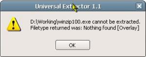 4. Seems that sometimes it has difficulties to recognize the archive format. If you take for example the original Trialversion for winzip 10 - a zipexe archive - UniversalExtracter responds with a message: winzip100.exe cannot be extracted. Filetype returned was: Nothing found [Overlay] If you try to extract it with Winrar or 7-zip there are no problems. This problem existed since the first version of Universalextractor Saluti
