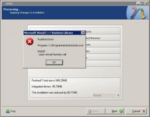I just got this error as well (didnt get it before - not with 1.2 RC either) I am using 1.2 RC while getting the error. I have attached the LAST_SESSION.INI where I got the error and the one before that where I didnt get the error. On a side note: nLite seems to have completed and even though it closed nLite when I clicked OK button I could still make a perfectly working .ISO afterwards with nLite's output/work EDIT: NO! It installed and logged in my administrator user fine the first time - after that reboot something was messed up :-( LAST_SESSION.INI LAST_SESSION__205209.29_14.54.39_.INI