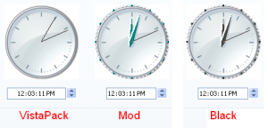 I hacked my XP sp3 and I got my clock to look like this. It may even look better with a black clock bmp. timedate.cpl version 5.1.2600.5512: clock hands - change the RGB value at 19c5 from 00 80 80 to 44 44 44 5 min marks - change the RGB value at 1a02 from 00 FF FF to 90 90 90