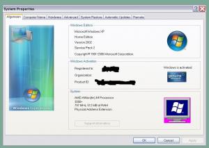 XibaD I could never get this to work in 2k. This is the final version that I tried from Damian. 101 DIALOGEX 32, 10, 395, 236 STYLE DS_FIXEDSYS | DS_MODALFRAME | WS_POPUP | WS_VISIBLE | WS_CAPTION CAPTION "Algemeen" LANGUAGE LANG_DUTCH, 0x1 FONT 8, "MS Shell Dlg" { CONTROL "1", 51, STATIC, SS_BITMAP | SS_CENTERIMAGE | WS_CHILD | WS_VISIBLE, 314, 2, 77, 66 CONTROL "Windows version:", 10, STATIC, SS_LEFT | WS_CHILD | WS_VISIBLE | WS_GROUP, 137, 2, 61, 8 CONTROL "Microsoft Windows Vista Ultimate", 11, STATIC, SS_LEFT | WS_CHILD | WS_VISIBLE | WS_GROUP, 137, 12, 100, 8 CONTROL "", 52, STATIC, SS_LEFT | WS_CHILD | WS_VISIBLE | WS_GROUP, 137, 23, 100, 8 CONTROL "", 53, STATIC, SS_LEFT | WS_CHILD | WS_VISIBLE | WS_GROUP, 137, 33, 100, 8 CONTROL "Registered to:", 12, STATIC, SS_LEFT | WS_CHILD | WS_VISIBLE | WS_GROUP, 137, 75, 92, 9 CONTROL "", 54, EDIT, ES_LEFT | ES_AUTOHSCROLL | ES_READONLY | WS_CHILD | WS_VISIBLE, 137, 84, 100, 10 CONTROL "", 55, EDIT, ES_LEFT | ES_AUTOHSCROLL | ES_READONLY | WS_CHILD | WS_VISIBLE, 137, 97, 100, 10 CONTROL "", 56, EDIT, ES_LEFT | ES_AUTOHSCROLL | ES_READONLY | WS_CHILD | WS_VISIBLE, 136, 98, 100, 8 CONTROL "", 57, EDIT, ES_LEFT | ES_AUTOHSCROLL | ES_READONLY | WS_CHILD | WS_VISIBLE, 236, 86, 100, 8 CONTROL "Vervaardigd en ondersteund door:", 58, STATIC, SS_CENTER | WS_CHILD | WS_GROUP, 269, 128, 120, 8 CONTROL "Computer type:", 59, STATIC, SS_LEFT | WS_CHILD | WS_VISIBLE | WS_GROUP, 137, 129, 72, 8 CONTROL "", 60, STATIC, SS_BITMAP | SS_CENTERIMAGE | WS_CHILD | WS_VISIBLE, 272, 148, 120, 72 CONTROL "", 61, STATIC, SS_LEFT | SS_NOPREFIX | WS_CHILD | WS_VISIBLE | WS_GROUP, 275, 137, 110, 8 CONTROL "", 62, STATIC, SS_LEFT | SS_NOPREFIX | WS_CHILD | WS_VISIBLE | WS_GROUP, 137, 144, 110, 8 CONTROL "", 63, STATIC, SS_LEFT | SS_NOPREFIX | WS_CHILD | WS_VISIBLE | WS_GROUP, 135, 159, 110, 8 CONTROL "", 64, STATIC, SS_LEFT | SS_NOPREFIX | WS_CHILD | WS_VISIBLE | WS_GROUP, 141, 173, 110, 8 CONTROL "", 65, STATIC, SS_LEFT | SS_NOPREFIX | WS_CHILD | WS_VISIBLE | WS_GROUP, 139, 197, 110, 8 CONTROL "", 66, STATIC, SS_LEFT | SS_NOPREFIX | WS_CHILD | WS_VISIBLE | WS_GROUP, 135, 212, 110, 8 CONTROL "&Ondersteuningsinformatie...", 67, BUTTON, BS_PUSHBUTTON | WS_CHILD | WS_DISABLED | WS_TABSTOP, 294, 222, 98, 14 CONTROL 6, 68, STATIC, SS_BITMAP | SS_CENTERIMAGE | WS_CHILD | WS_VISIBLE, 0, 1, 133, 234 CONTROL 3, 50, STATIC, SS_BITMAP | SS_CENTERIMAGE | WS_CHILD | WS_VISIBLE, 334, 86, 57, 30 } I also tried a LANG_ENGLISH version as well. Could you post yours? He may not want this but it is an easy thing for you to change on your own.
