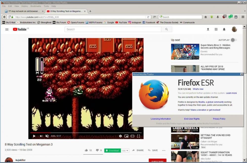 Both the videos that are failing for you are OK here. Interesting that you have the banner saying that some plugins are no longer supported. Just to confirm, you are using the ESR version of Firefox 52? If not, that could well be the problem. -