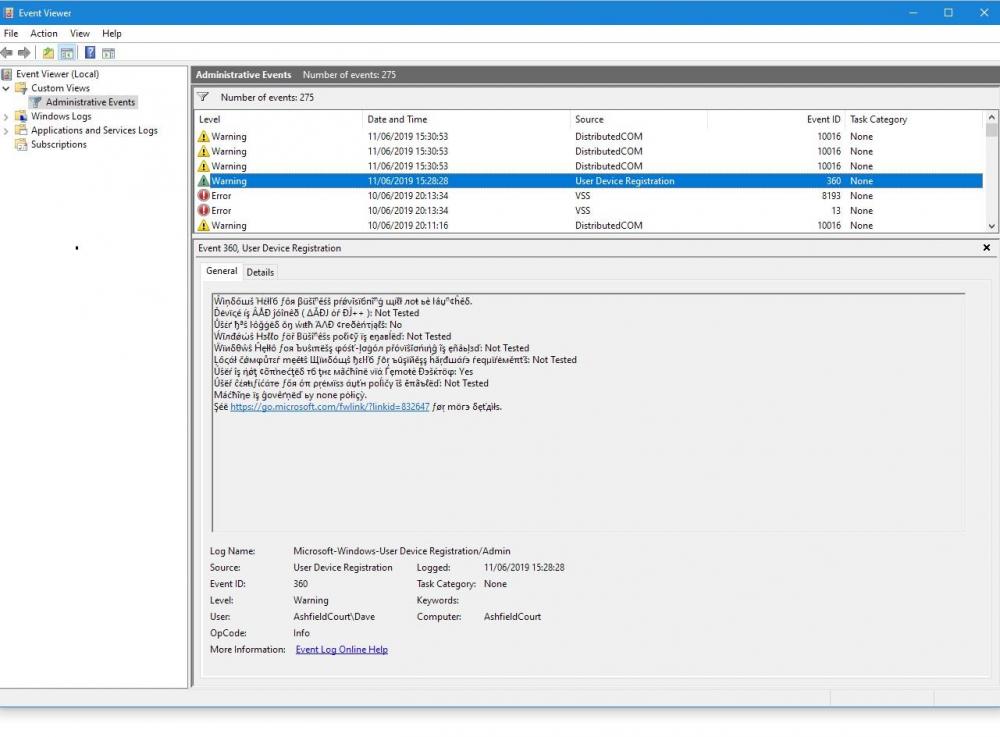 Just updated to version 1903, and seeing this on every boot in the Windows Event Log! What's all that about?!