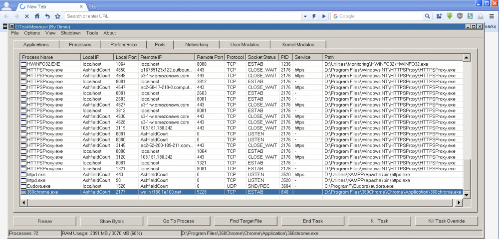 @NotHereToPlayGames Hi again! Do you remember when I started using your 360Chrome 13.5 I queried that it seemed to be searching for something when the first tab was opened when the program started? I've just checked on this again, and found this when the program is first run and there is a progress animation (which never ends) in the first tab. The domain ws-in-f188.1e100.net appears to be a Google domain. Any idea why the program should be trying (presumably unsuccessfully) to contact it when it runs, and should I block it?