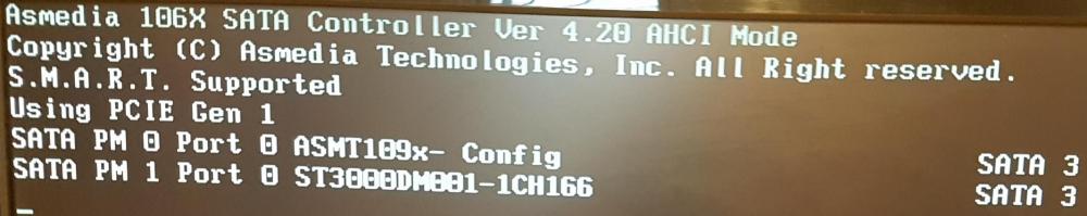 I realise that this is getting off-topic, as it relates to hardware, but I think what's happening with my card is that there is an extra device being detected, which is actually the on-board chip, which pretends to be a 100MB disk, called 'ASMT109x- Config'. This is the XP Device Manager without the card - And this is Device Manager with the card - So it looks as if the card is adding one extra IDE Controller, with associated extra Primary and Secondary IDE Channels. As each channel supports two devices, that would be the four SATA ports on the card. If I run the card in 'No boot' or IDE mode, there is no BIOS text on boot, but if I run it in AHCI mode, I see this - That shows the 'phantom' disk, labelled 'ASMT109x- Config'. Research indicates that many people have been puzzled by this! In fact (even further off-topic) in Windows 10 that 'disk' actually appears as an uninitialised disk in Disk Management! I found the only way to stop it popping up messages about it was to declare the disk off-line. So, it would appear that this 'phantom disk' is also the 'code 10' device shown in the Windows 98 Device Manager, and also the cause of the system freezes in Windows XP, which is trying to load a driver for it! All I've got to do now is somehow to stop Windows XP seeing it! Any ideas anyone? Anyway, to get back onto topic, things look good with the 3TB disk with this configuration. If works fine, and I've written to it using Windows XP and Windows 10, and there is no sign of any corruption apart from when I check in Windows XP after being in Windows 10, CHKDSK says it's "correcting errors in the uppercase file". I have no idea whether this is anything to worry about or not, but it's certainly nothing like the huge list of index corruption errors I was getting before!