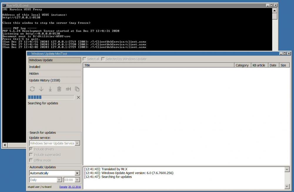 You're using the Windows Update MiniTool I assume, not IE8? Can I ask what proxy setting you're using now, I can't see some posts on the MDL forum as I'm not a member. I was using http://wsus.update-old-wins.fr.nf/? as the proxy. Has that now been superseded? -