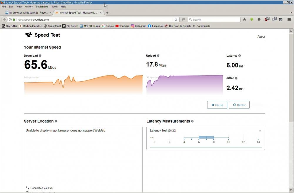 Thanks, problem solved! It's my ancient ATI graphics card that doesn't support WebGL in Firefox. If I switch to the Nvidia card it's fine! I do wonder why that Cloudflare test site is still using WebGL if it's obsolete. I'll go away again now...... -
