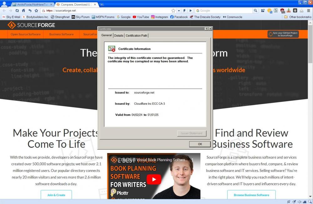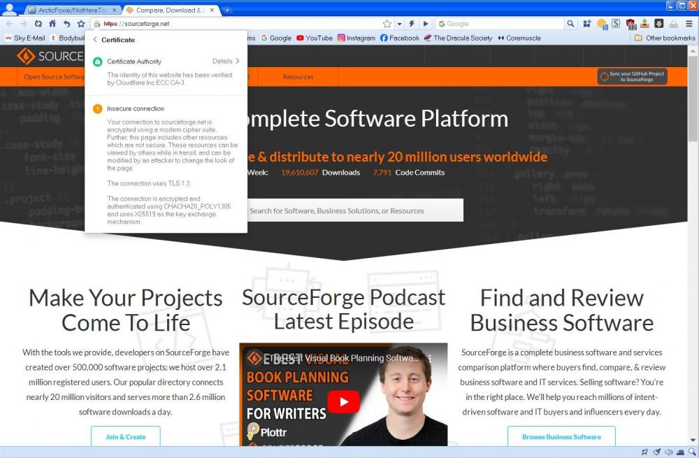 The Sourceforge site seems to work fine here, in 360Chrome, Supermium, and Thorium. At least the homepage looks fine. What are you actually trying to do there?