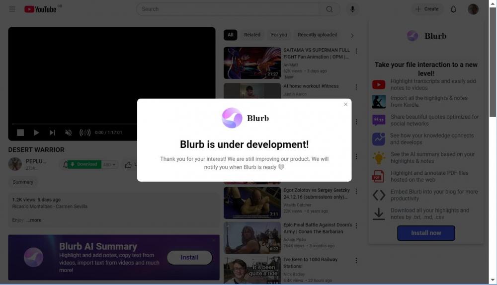 Thanks everyone. Nice to hear that apparently I'm being singled out for this annoyance! The (bad) joke is that when I go to any video, I get this - If I click on the 'Install' button, I then get this - And if I click on the 'install now' button, I then get this - What a joke! And yes, it's exactly the same if I log out from Google. Is there no end to this AI crap that's being pushed at everyone now?!
