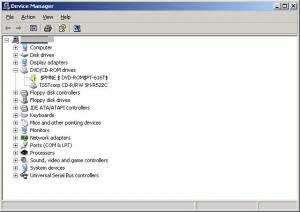 Recently, i upgraded my SDRAM from 256MB(128*2) to 1GB (512*2), and after few days changed by Motherboard battery. Now i am facing these problem: 1. Occasionally, windows xp restarts in middle withought giving any warning. For past 2/3 days it has stop doing so. I didnt know why was it happening, using crash-dump analysis, i found some sys files crashing. (But found no apparent reason). Now the major problem which occured: 2. My DVD drive name changes (gibberish or bad characters with $ character) on every boot in BIOS and thus i cannot use this drive in windows xp. (Since windows xp dont recognise this drive). In BIOS, i tried using auto-detect several times, but found no solution. Windows xp worked perfectly correct for 2/3 days after i changed battery. I am confused. What could be the problem? has someone faced such thing? Please help me find the solution or guide me in correct direction. p.s. attached is the image of Device-Manager