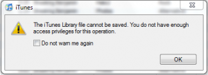 After installing iTunes on Windows7 everytime i use it this message pops up [see Below] I have checked out many of the ideas on the web already..... My music is saved on my D:\ Partition.... Any ideas that might help......