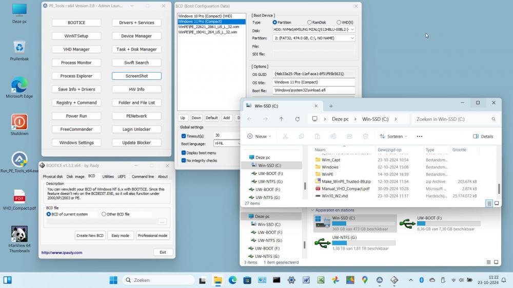 Update Download: Make_WinPE_Trusted-90 - E = file Encrypted with pw=bootwimb Update Download: PE_Tools version 2.8 with Portable Apps for WinPE Make_WinPE - Make PE WIM file from Windows 10/11 x64 ISO file Download Manual VHD_Compact PDF -